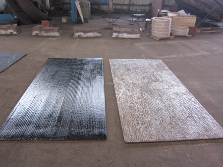 高鉻堆焊耐磨襯板的合金層中含有高百分比的金屬鉻,故具有一定防銹和耐腐蝕能力。用于落煤筒和漏斗等場(chǎng)合可以做到防止粘煤。
